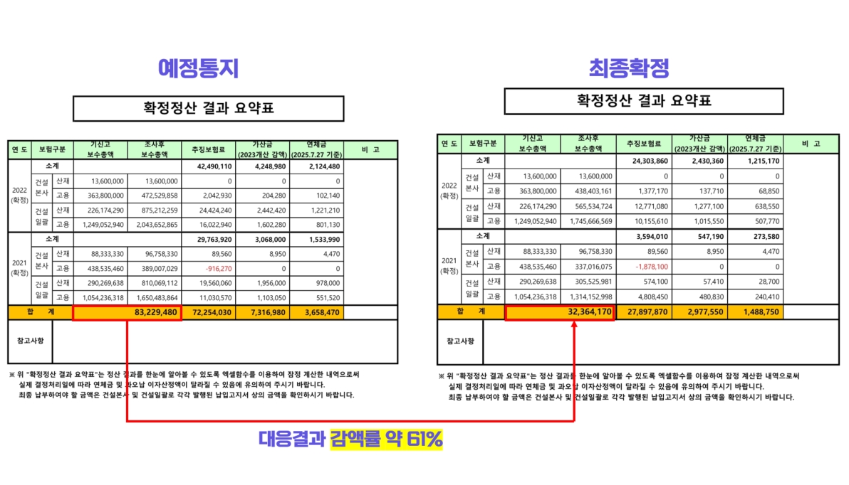 근로복지공단 1차 추징 통지 2021년~2022년 2개년도 83,229,480원