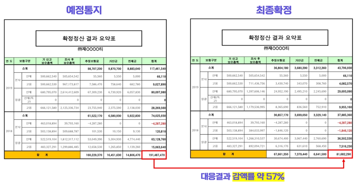 근로복지공단 1차 추징 통지 2018년~2019년 2개년도 191,487,470원